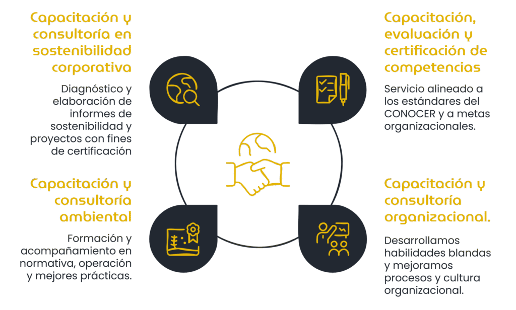 Ayudamos a organizaciones a fortalecer su competitividad integrando la sostenibilidad en sus capacidades clave. Cambiamos comportamientos y desarrollamos capacidades técnicas al mismo tiempo.
